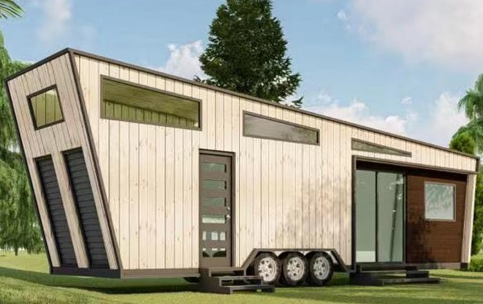 Ontdek ons Chicago model. Dit prachtige Tinyhouse mengt zich in de natuur alsof deze er altijd gestaan heeft.